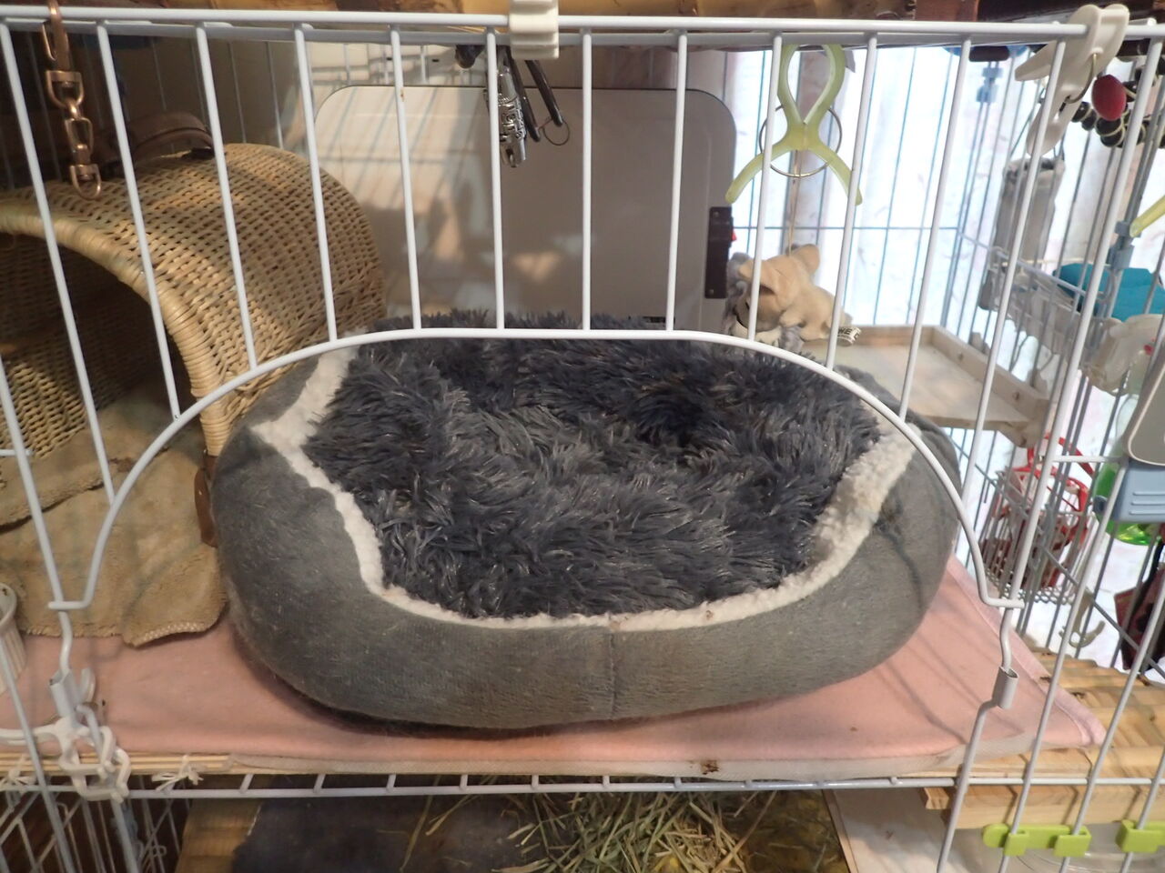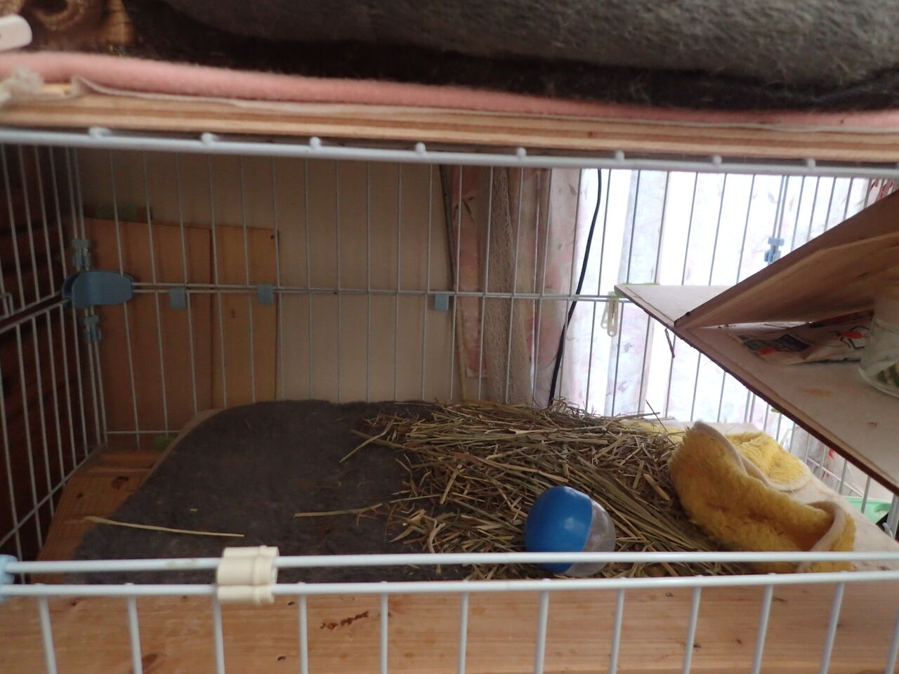 ケージの扉は外してありますので出入り自由ですので時々出てきて走り回っていますが、