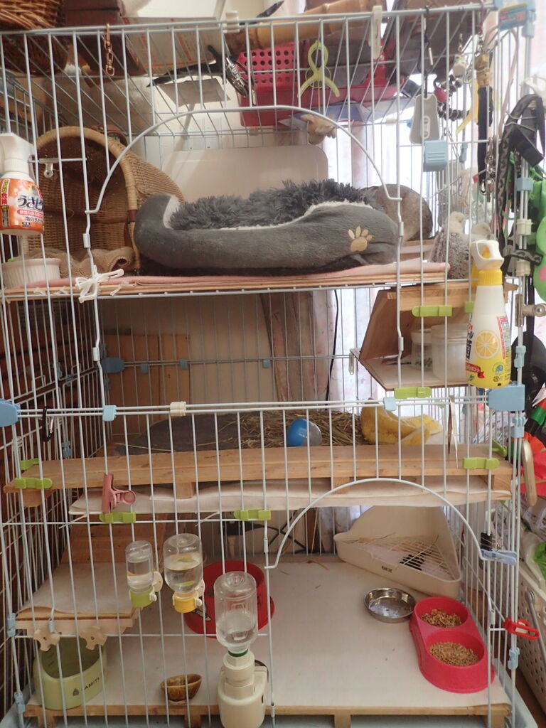元は猫用のアイリスオーヤマ製の二段のケージです。